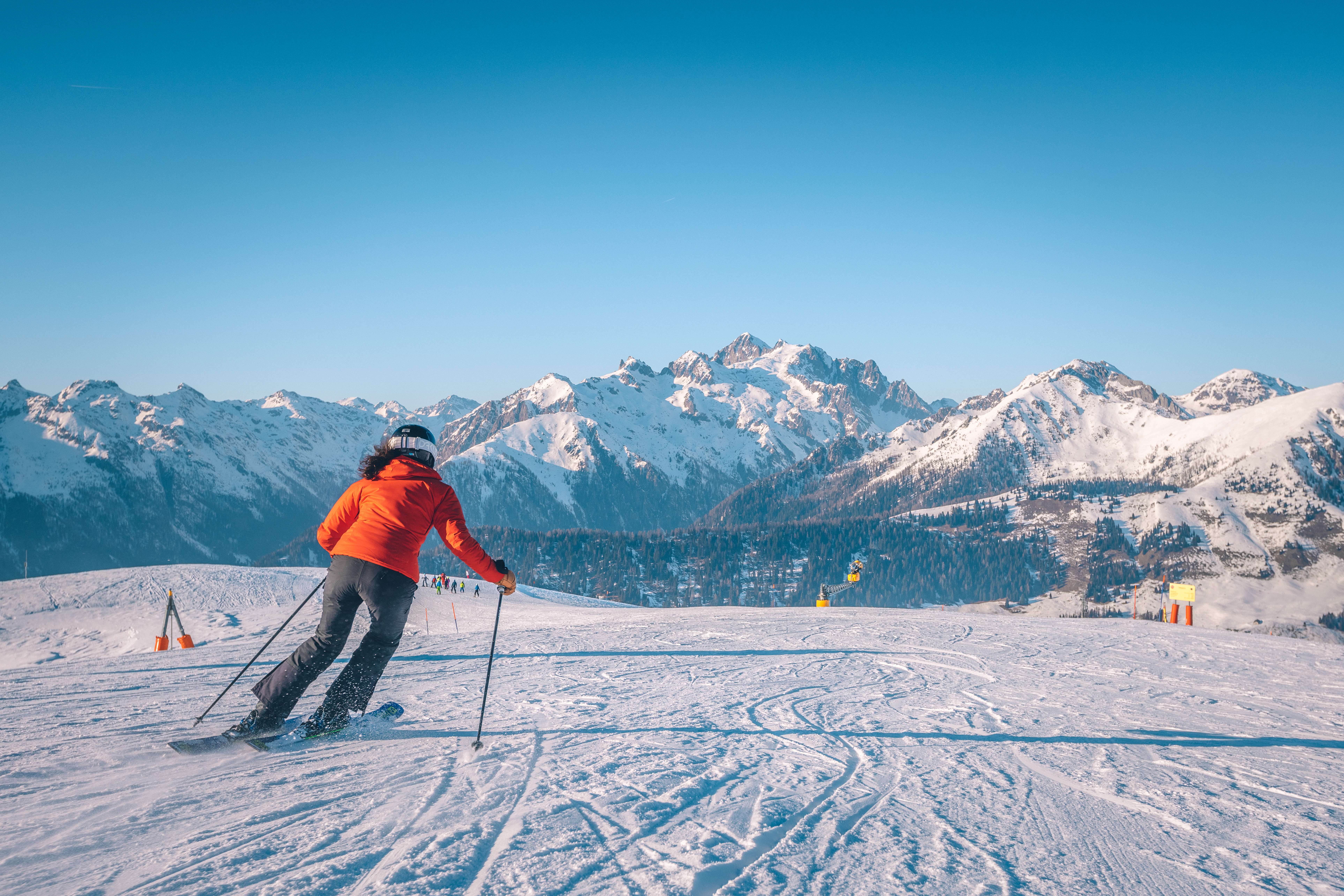 A Passo Brocon la montagna è a misura d’uomo: niente folle, solo neve curata ogni giorno, panorami soleggiati e rifugi dove fermarsi a gustare i sapori del Trentino.